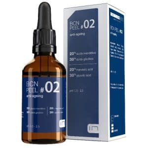 BCN PEEL 02 is een geavanceerde chemische peeling op basis van 20% amandelzuur en 30% glycolzuur, gericht op herstel van de elasticiteit en vermindering van fijne lijntjes.